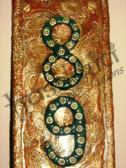 Name plate of 8” in shades of orange and red with more traditional appeal enriched with gold dust.